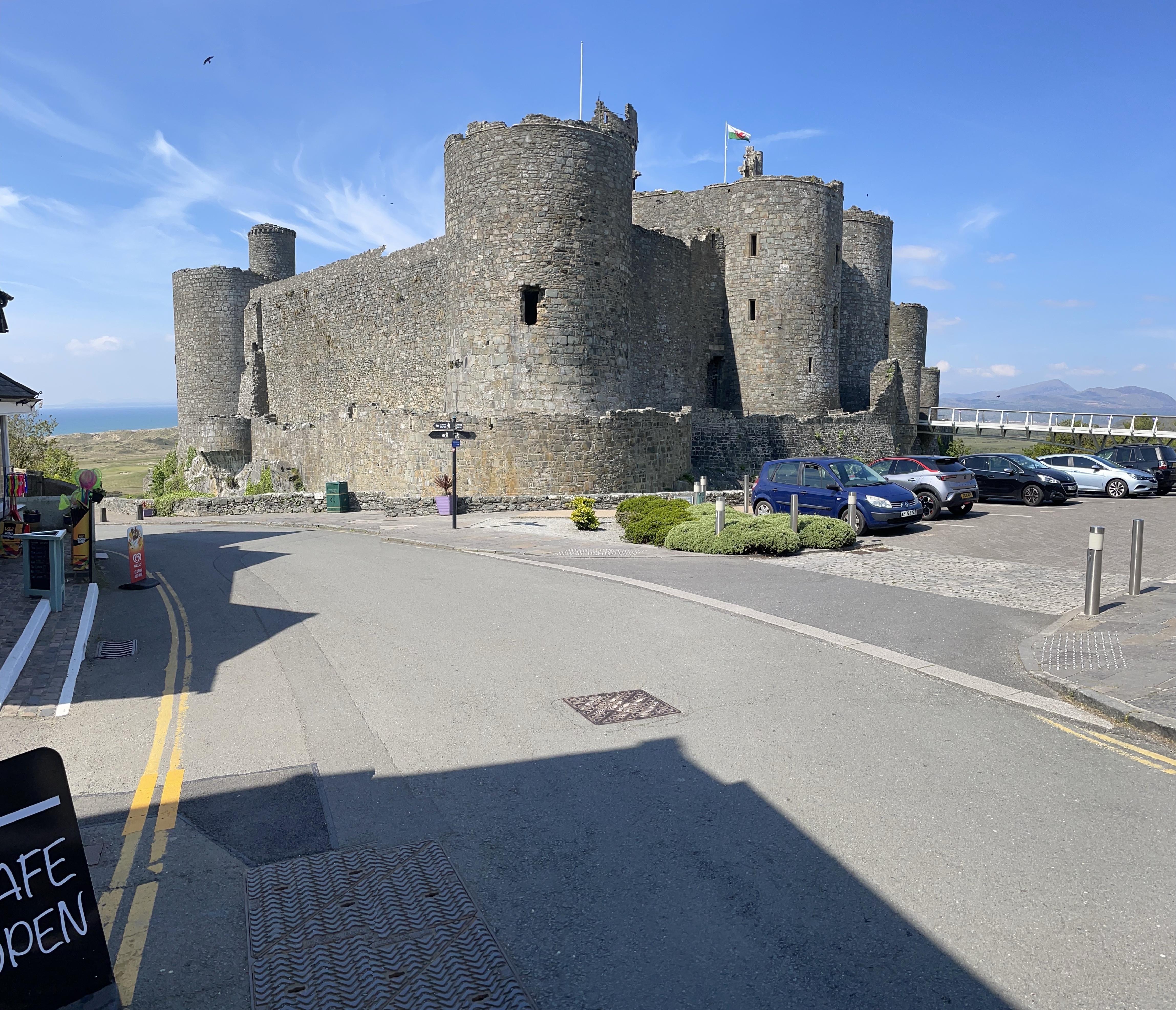 Today I have mostly been…. Driving round Wales seeking castles from land and aerial views. I thought it would be nice to share with the group. First stop was Caernarfon airport where a helicopter awaited for a flight around the Menai straits. Looking at castles from above always helps to appreciate the majestic dominance they hold over the surrounding area. Following that was a trip to Harlech castle. I thought i would share with the group.