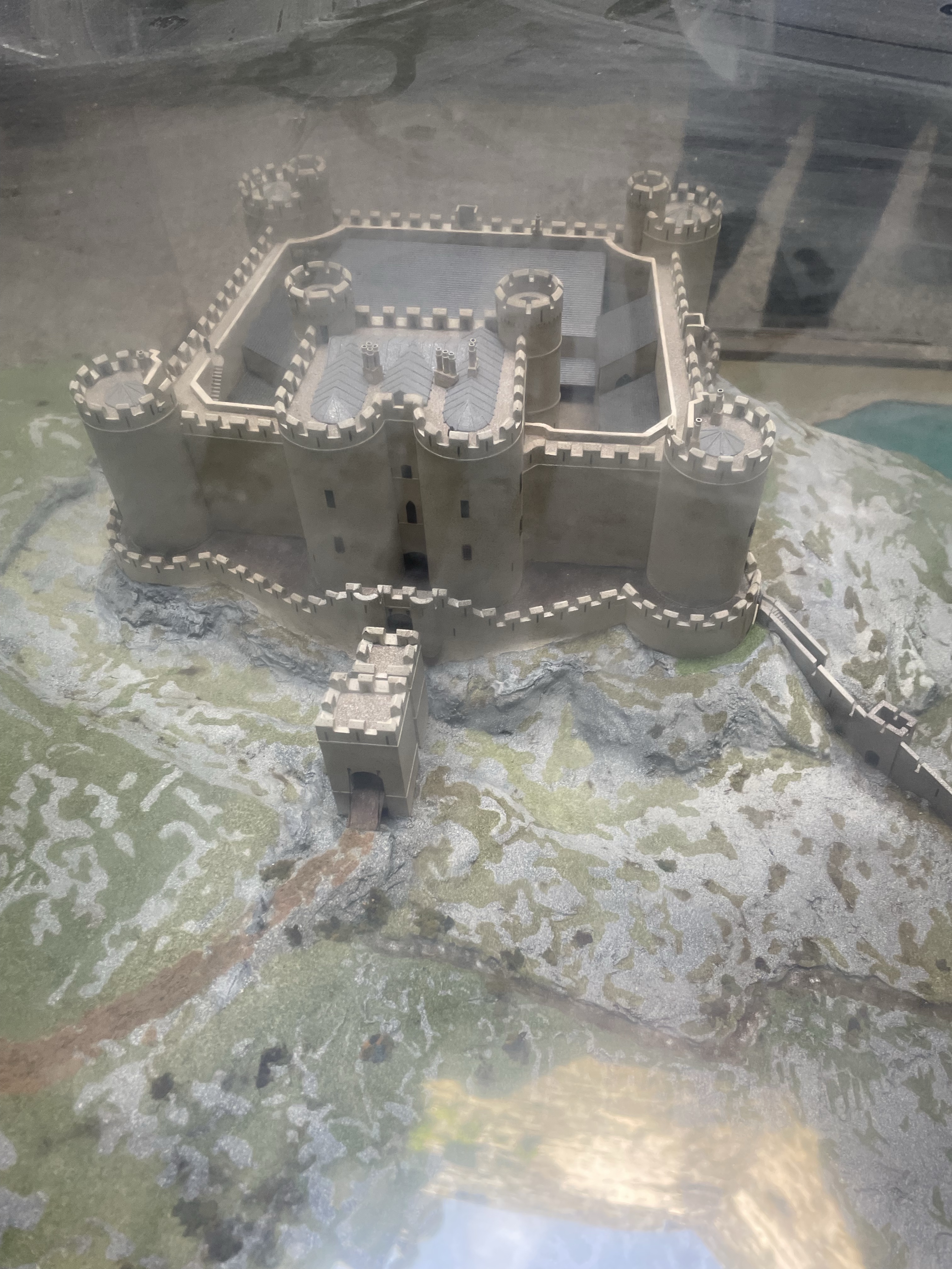 You may notice that despite this being a very expensive castle the moat is evidently not complete. this is because the sea used to come up to the walls on that side and allow supply by boat. A common theme for these four castles. Where there is a square of water. This is the old loading bay.